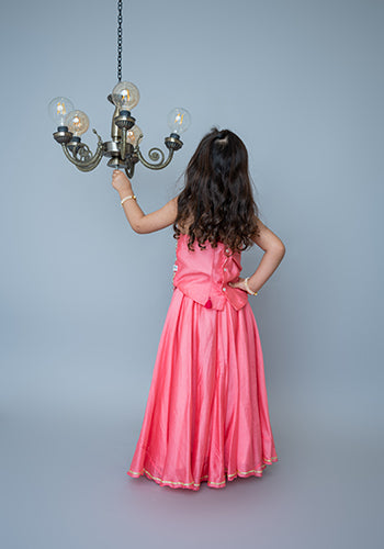 We always strive to produce unique, lovingly handcrafted and practical apparel. And we use only the finest handwoven textiles and GOTS Certified Organic cotton. Our classic sleeveless lehnga is beautifully embroidered with a geometric mirror design accentuated with handmade tassels. Delicately beautiful and stylish. Most importantly, there is "no chubhi chubhi". The entire ensemble is buttery soft and perfect for children's delicate skin.