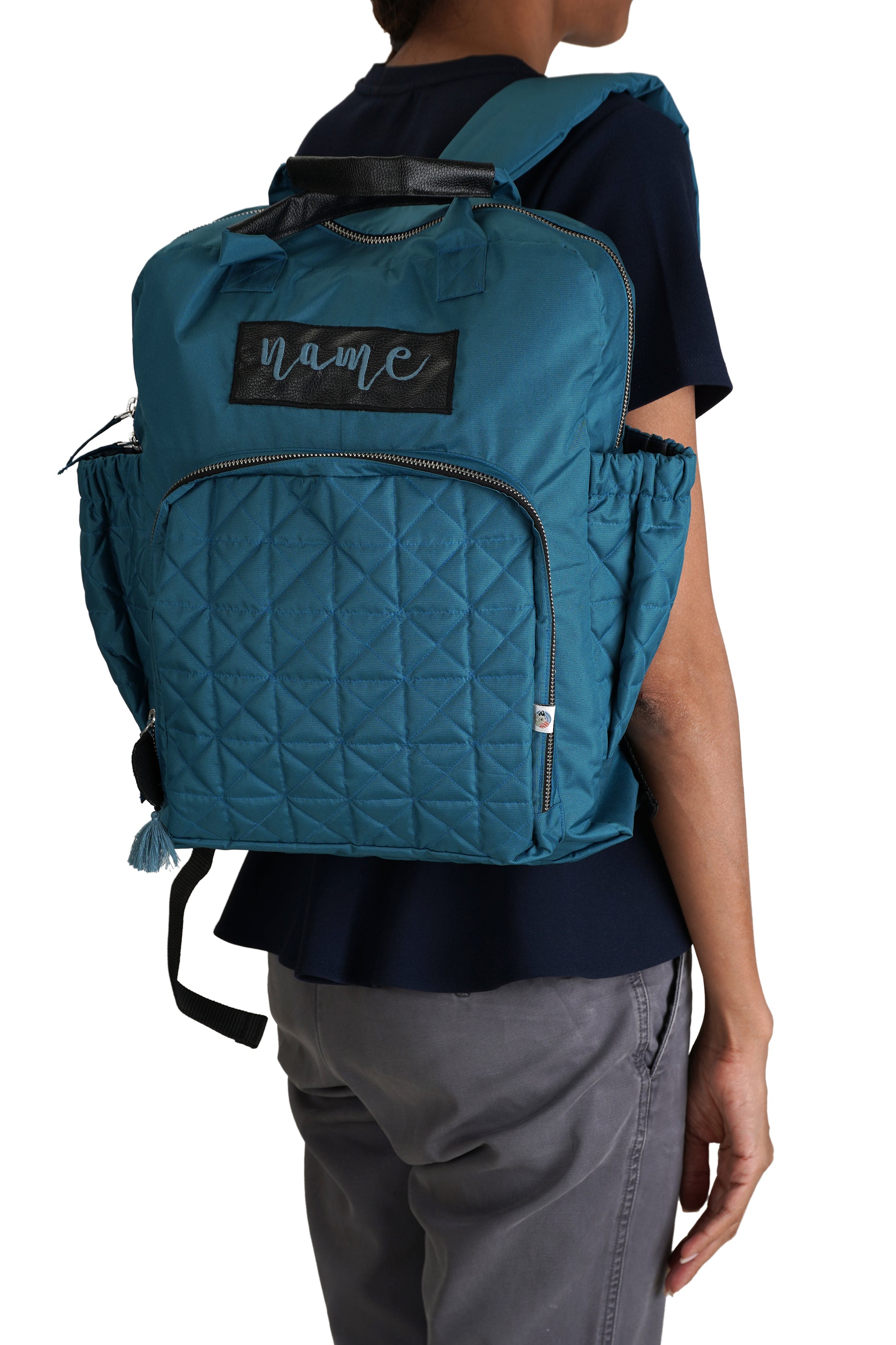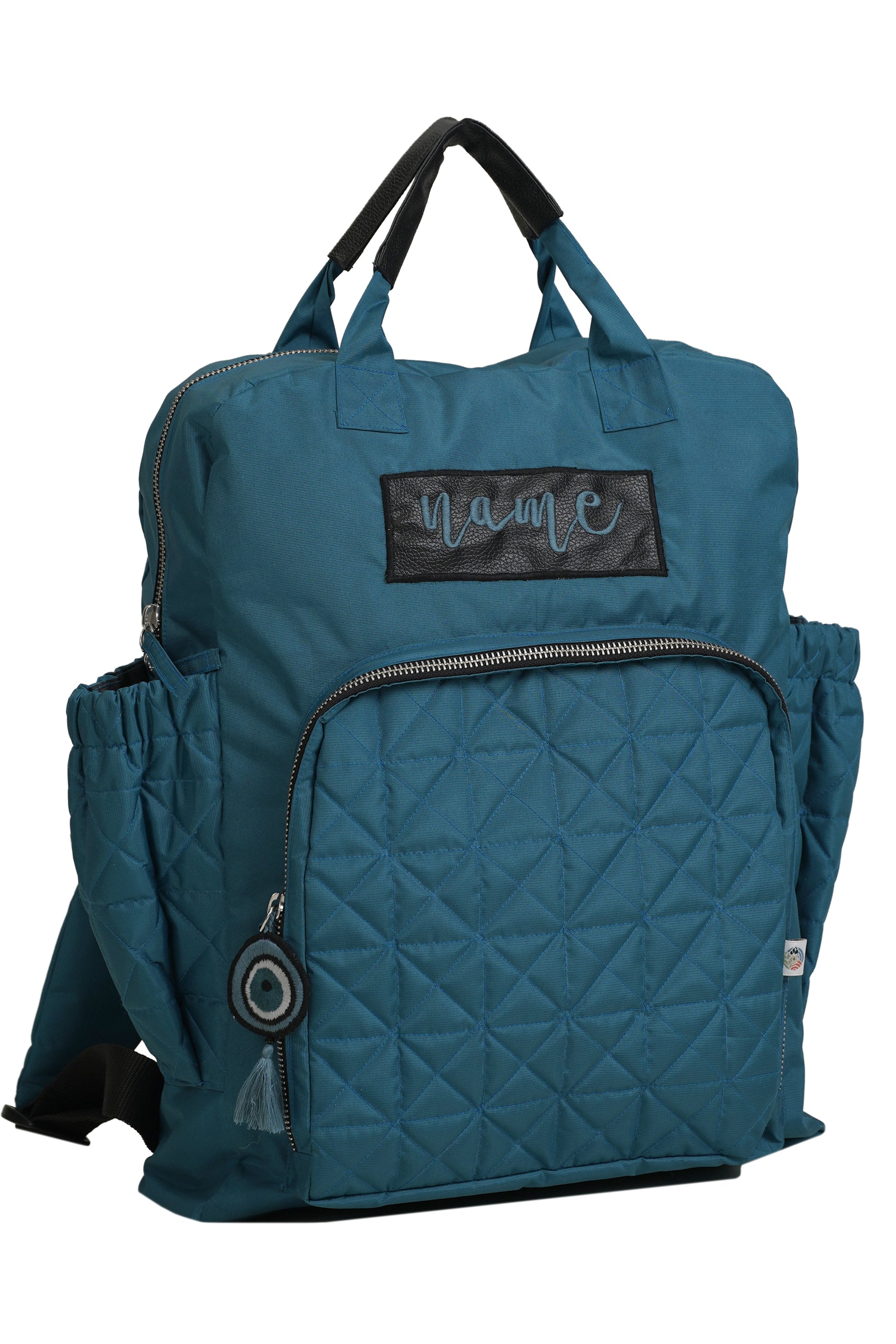 Taking cues from nature, Mi Dulce An'ya's Diaper Backpack features a boxy silhouette for a modern take on a multitasking mom essential. Fashion-forward and functional, the spacious diaper bag is accented with a quilted front pocket and embroidered evil eye accessory that punctuate the bag’s clean lines. A large main compartment opens wide for easy access and zips closed securely. Diaper bag essentials pack perfectly in the back pocket so they’re ready to go. Custom name embroidery completes the look. Over-the-shoulder handles offer hands-free ease (so mom can carry her little one, too). Crafted in sustainable Chic Organic canvas, it’s a look that shifts from playdate to weekend getaway in signature streamlined style.
