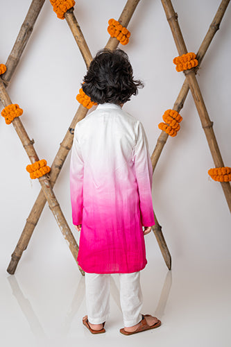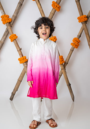 We always strive to produce unique, lovingly handcrafted and practical apparel. And we use only GOTS Certified Organic cotton and the finest handwoven textiles. Our classic shaded kurta with delicate hand embroidered motif is complemented perfectly with contrast pajama kurta. Most importantly, there is NO CHUBHI CHUBHI. The entire ensemble is buttery soft and perfect for children's delicate skin.