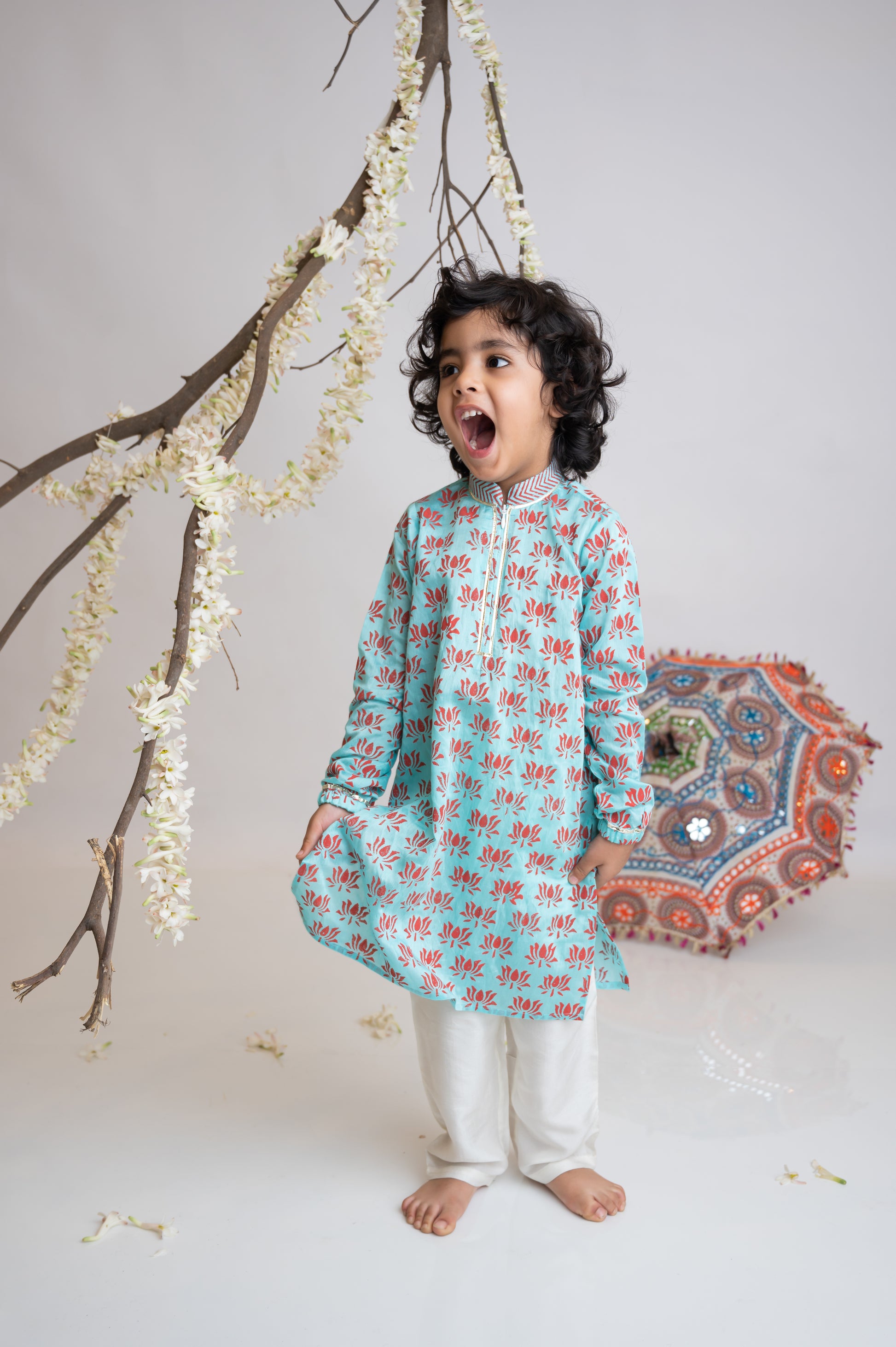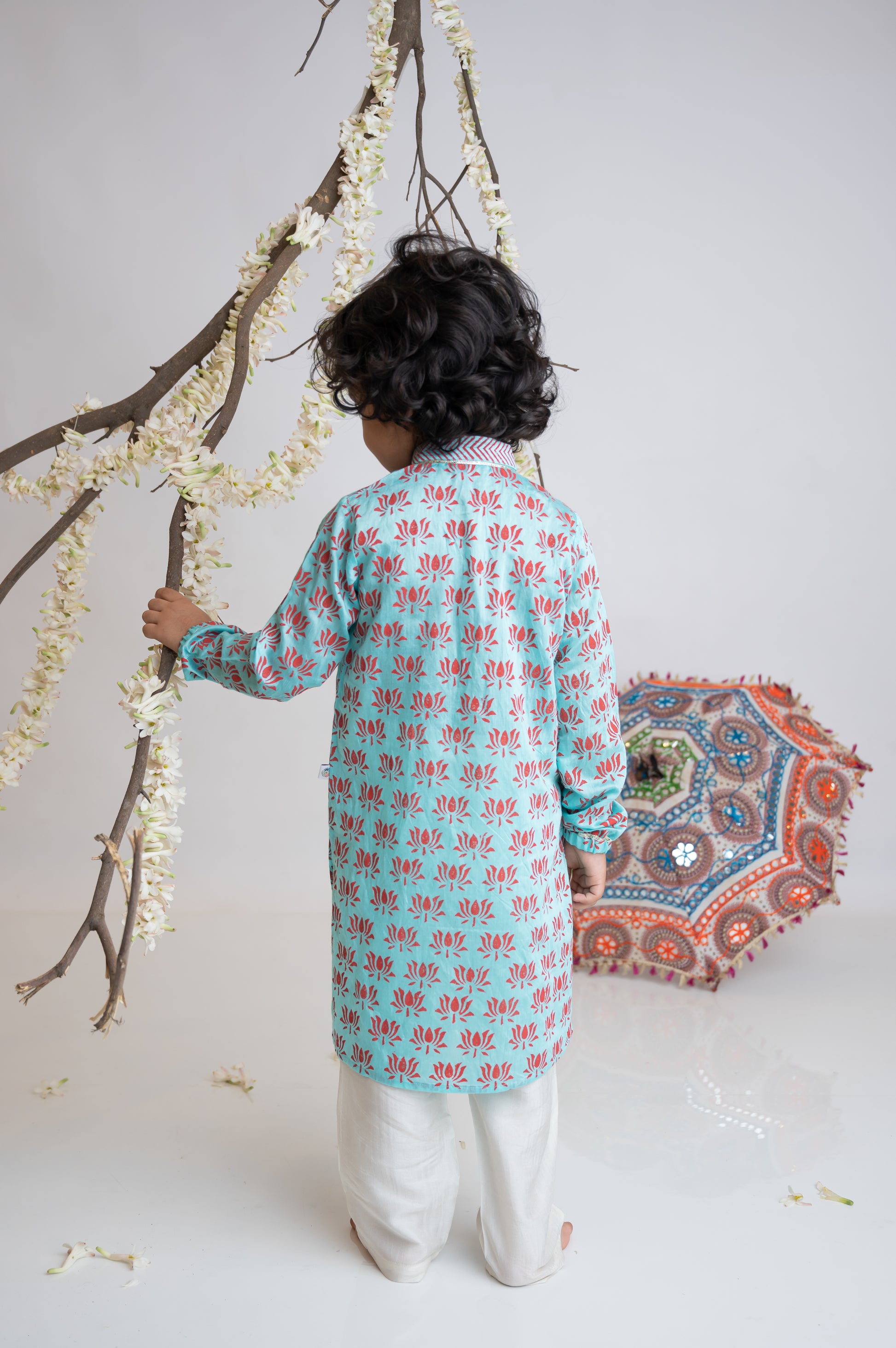 Turq Lotus print kurta set for boys