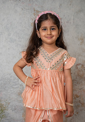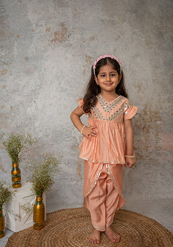 We always strive to produce unique, lovingly handcrafted and practical apparel. And we use only the finest handwoven textiles and GOTS Certified Organic cotton. Our classic dhoti is beautifully embroidered with a geometric mirror design. Delicately beautiful and stylish. Most importantly, there is "no chubhi chubhi". The entire ensemble is buttery soft and perfect for children's delicate skin.