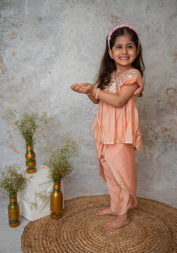 We always strive to produce unique, lovingly handcrafted and practical apparel. And we use only the finest handwoven textiles and GOTS Certified Organic cotton. Our classic dhoti is beautifully embroidered with a geometric mirror design. Delicately beautiful and stylish. Most importantly, there is "no chubhi chubhi". The entire ensemble is buttery soft and perfect for children's delicate skin.