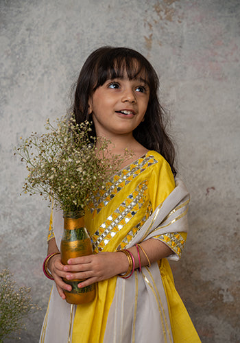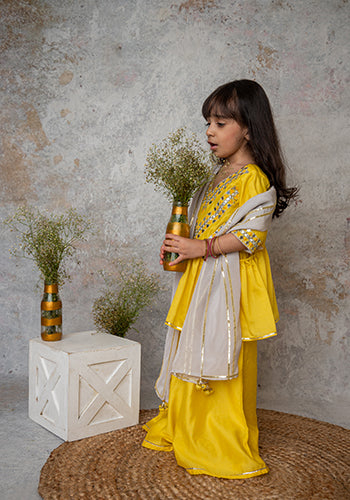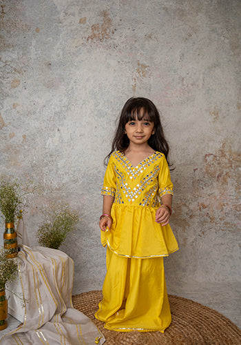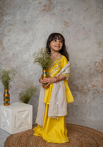 Yellow Mirror embroidery cut out sharara with dupatta for infant girls